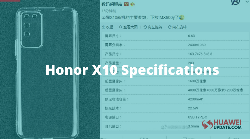Honor X10 Specifications:
