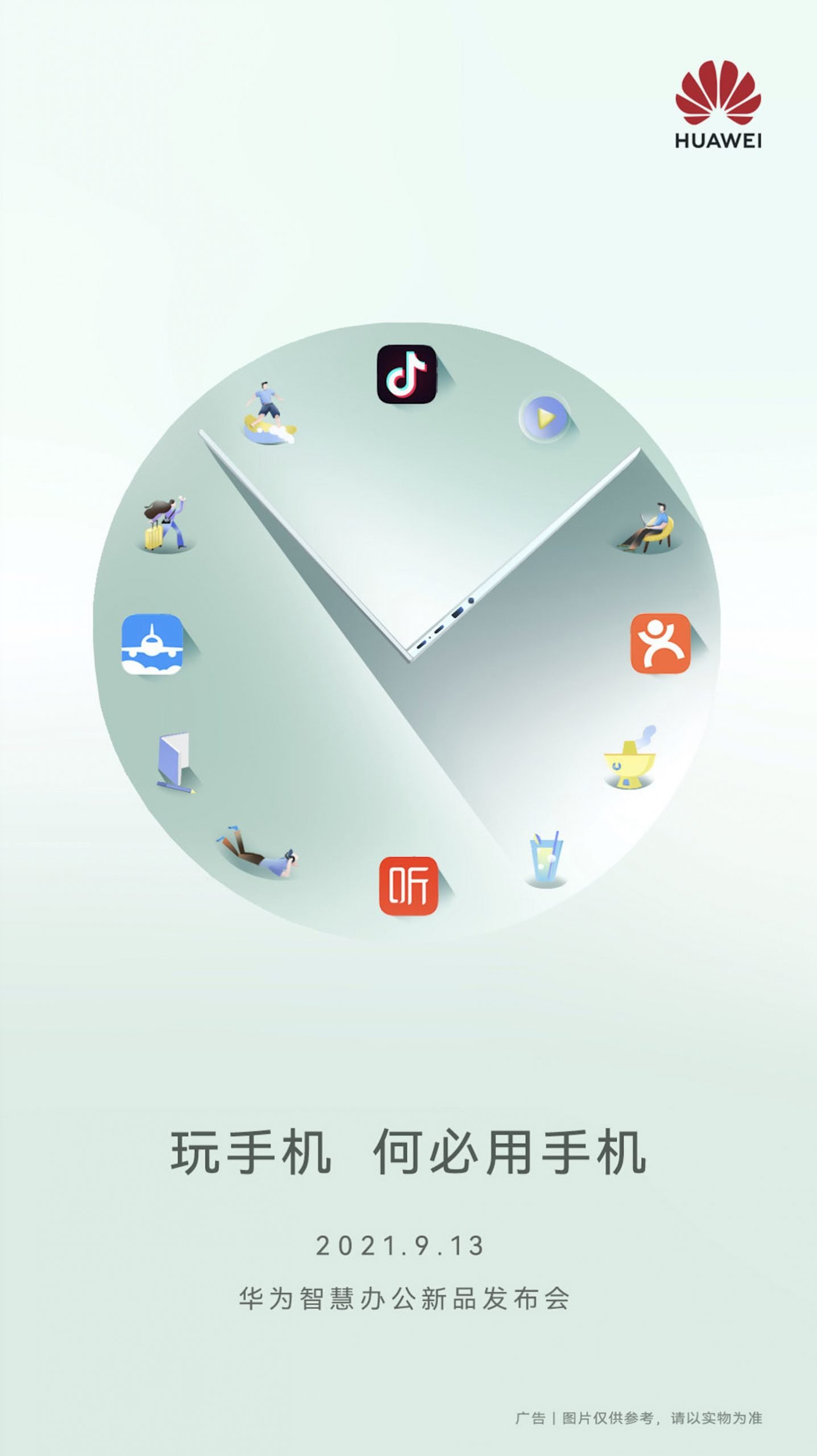 Huawei is set to hold a new conference on September 13, today, Huawei officially warm-up a new poster, it can be seen from the picture that a new notebook product can run mobile apps such as Douyin, Dianping, and Himalayan Tingshu, which is basically the same as the information previously revealed.